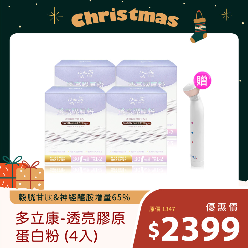 (組合)多立康透亮膠原蛋白粉X4盒+贈 Areti 3X熱感美容儀