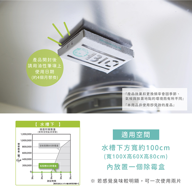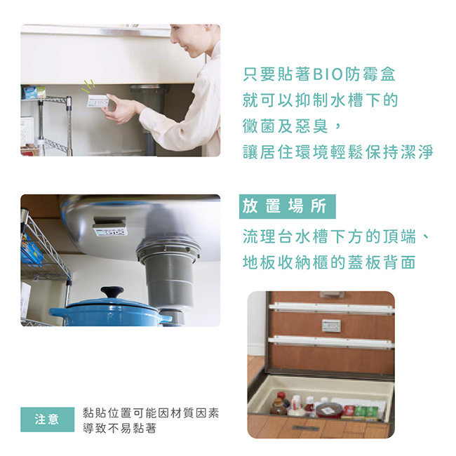 只要貼著BIO防霉盒就可以抑制水槽下的黴菌及惡臭,