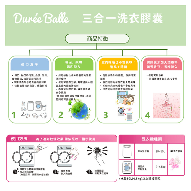 4.5kg衣物只需使用1顆/