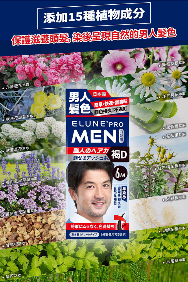 第1劑:Water, Cetearyl Alcohol, PEG-12, Glyceryl Stearate SE, Mineral Oil, p-Phenylenediamine, Isopropyl Palmitate, Ammonium Carbonate, Resorcinol, Ammonium Hydroxide, Betaine, 2,4-Diaminophenoxyethanol HCl, Ceteth-20, Beheneth-5, Behentrimonium Chloride, m-Aminophenol, Fragrance, Myristic Acid, Polyquaternium-11, Sodium Sulfite, Ascorbic Acid, Disodium EDTA, Isopropyl Alcohol, Glycyrrhiza Glabra (Licorice) Root Extract, Butylene Glycol, Panax Ginseng Root Extract, Aloe Barbadensis Leaf Extract, Methylparaben