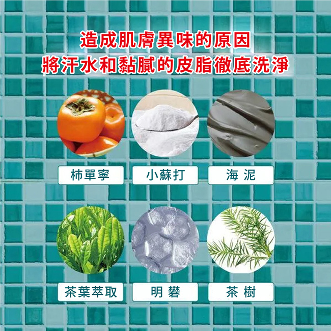 成分WATER, COCAMIDE DEA, LAURIC ACID, MYRISTIC ACED, POTASSIUM HYDROXIDE, SODIUM CHLORIDE, LAURAMIDOPROPYL BETAINE, MENTHOL, MENTHA ARVENSIS LEAF OIL, PHENOXYETHANOL, EUCALYPTUS GLOBULUS LEAF OIL, OLEIC ACID, METHYLPARABEN, DISODIUM EDTA, SODIUM BICARBONATE, BUTYLENE GLYCOL, SODIUM LACTATE, BENTONITE, POTASSIUM ALUM, LACTIC ACID, TANNIC ACID, MELALEUCA ALTERNIFOLIA (TEA TREE) LEAF OIL, CAMELLIA SINENSIS LEAF EXTRACT