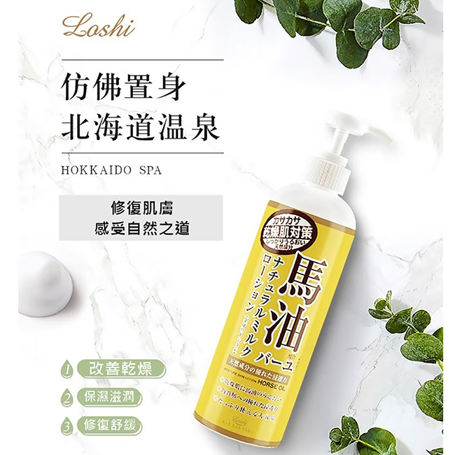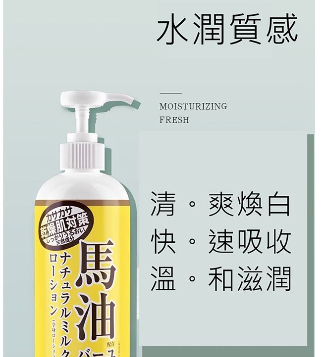 ●天然馬油潤澤乾燥肌膚,能深層浸透滋潤肌膚角質,