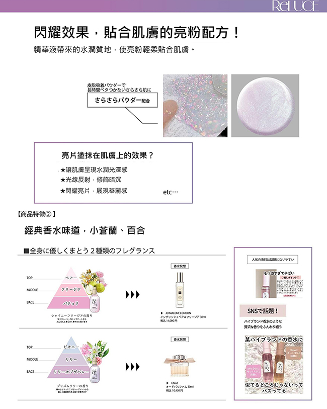 ●高濃度精華液成分,有效保濕滋潤肌膚。