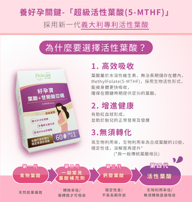 每顆含有220微克的活性葉酸