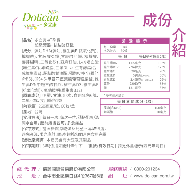 13.1毫克 甘胺酸亞鐵 補足紅潤氣色