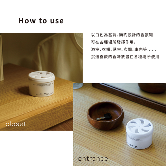 以白色為基調、簡約設計的香氛罐可在各種場所發揮作用。