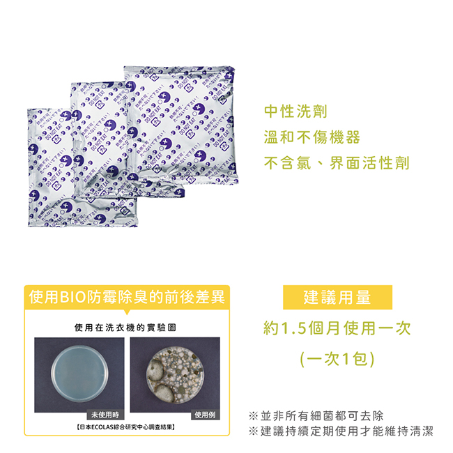 ※並非所有細菌都可去除 ※建議持續定期使用才能維持清潔