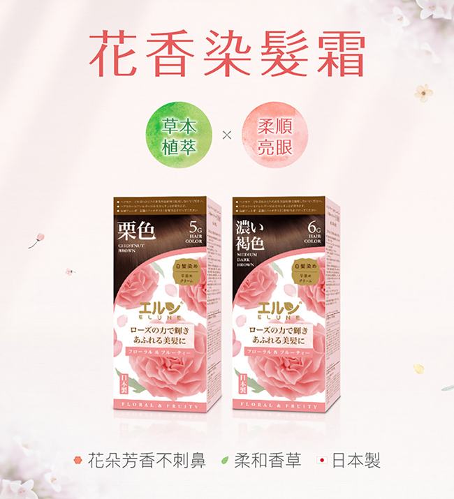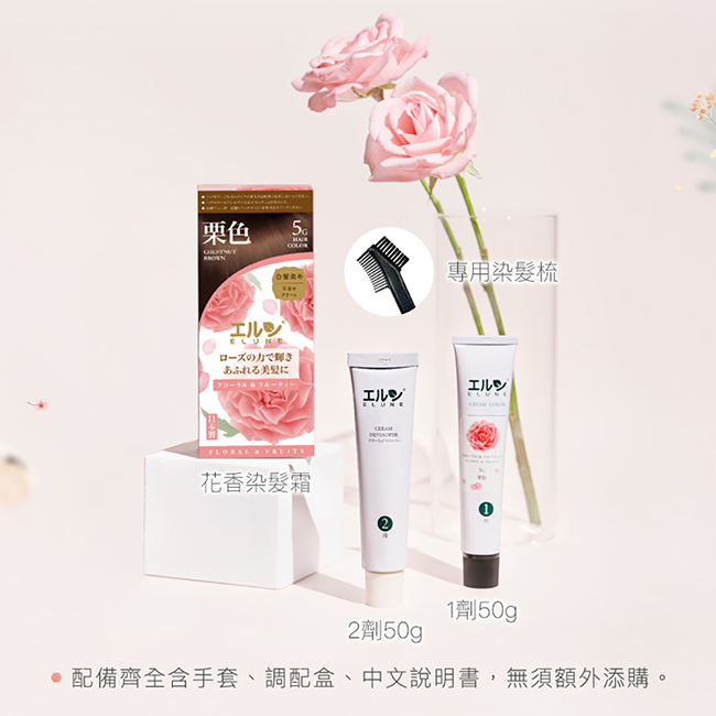 成分:第1劑:Water, Propylene Glycol, Cetearyl Alcohol, Ethanolamine, Glyceryl Stearate SE, Ceteth-2, Isopropyl Palmitate, Ceteth-20, Amodimethicone, Ammonium Sulfate, p-Phenylenediamine, Steartrimonium Chloride, p-Aminophenol, Resorcinol, Isopropyl Alcohol, 4-Amino-2-hydroxytoluene, Disodium EDTA, Fragrance, Betaine, Glycyrrhiza Glabra (Licorice) Root Extract, Ascorbic Acid, Sodium Sulfite, Rosa Centifolia Flower Water, Alcohol, Butylene Glycol, Rosa Canina Fruit Extract, Urea, Phenoxyethanol, Salvia Officinalis (Sage) Leaf Extract, Achillea Millefolium Extract, Equisetum Arvense Extract, Chamomilla Recutita (Matricaria) Flower Extract, Ononis Spinosa Root Extract, Althaea Officinalis Root Extract, Melissa Officinalis Leaf Extract, Tussilago Farfara (Coltsfoot) Flower Extract, Thymus Vulgaris (Thyme) Flower/Leaf/Stem Extract, Apium Graveolens (Celery) Extract