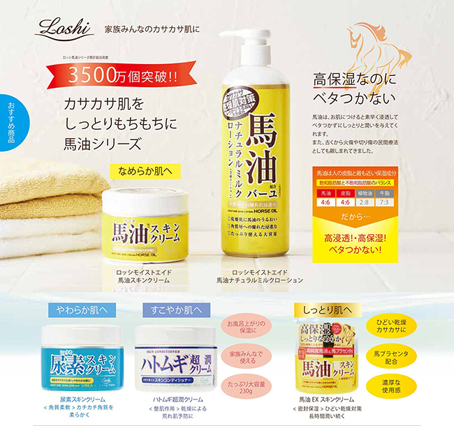 ●天然馬油潤澤乾燥肌膚,能深層浸透滋潤肌膚角質,