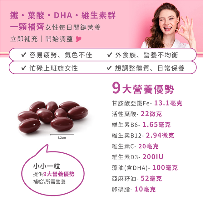 13.1毫克 甘胺酸亞鐵 補足紅潤氣色