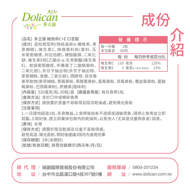 多立康-維他命C+E 口含錠 |