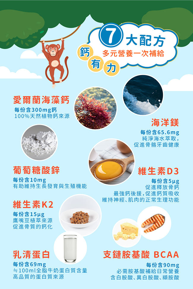、乳清蛋白、葡萄糖酸鋅、二氧化矽、檸檬酸、鷹嘴豆維生素